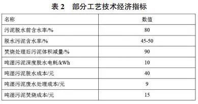 焚烧锅炉所形成的蒸汽将被输送至汽轮之中,以供发电机组进行发电,汽轮机所排放的蒸汽借助分气缸以及场区供热管实现对外部的供热,进而达到产电联产的效果。经过脱水污泥焚烧处置之后,污泥这一原本对环境造成严重危害的物质反而得到最大程度的利用,促进了热电联产的实现,从而达到了生态环境、节省能源以及循环经济的目标。而该处置方式的技术经济指标基本如下所示。